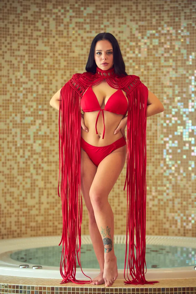 Mohutný doplnok na krk a plecia zhotovený s technikou macramé neprehliadnuteľne zvýrazní Váš outfit pri každých špeciálnych udalostiach. Tento výrazný šperk je dokonalou voľbou pre ženy, ktoré chcú upútať pozornosť jedinečným módnym prvkom.