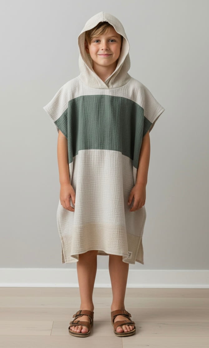 Detské mušelínové Pončo v ponuke v 5 veľkostiach.