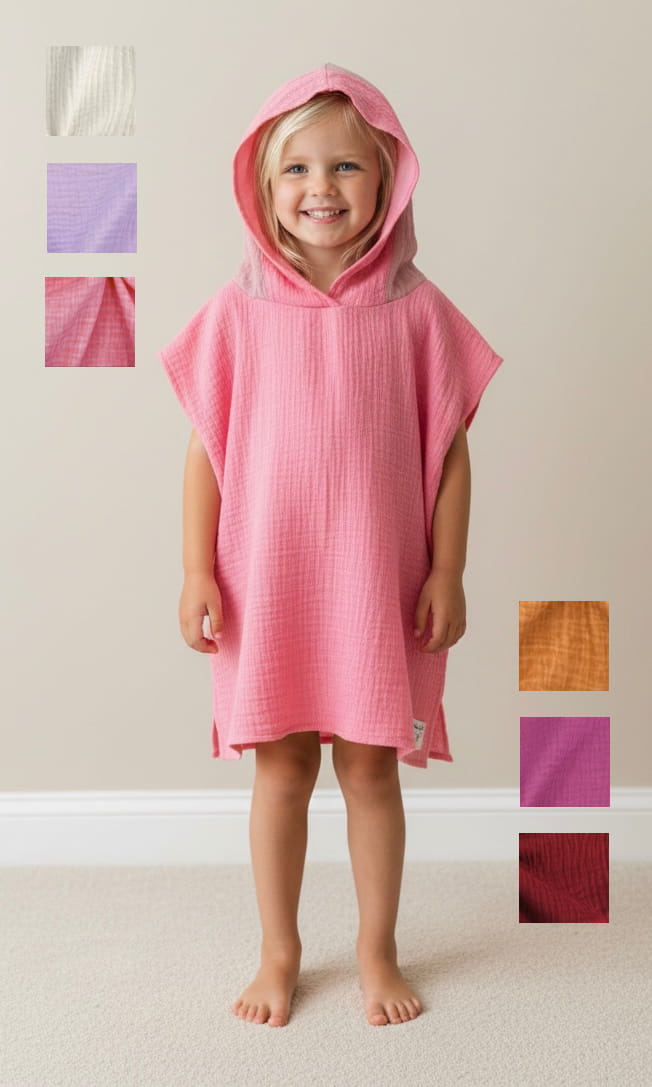 Detské mušelínové Pončo v ponuke v 5 veľkostiach.