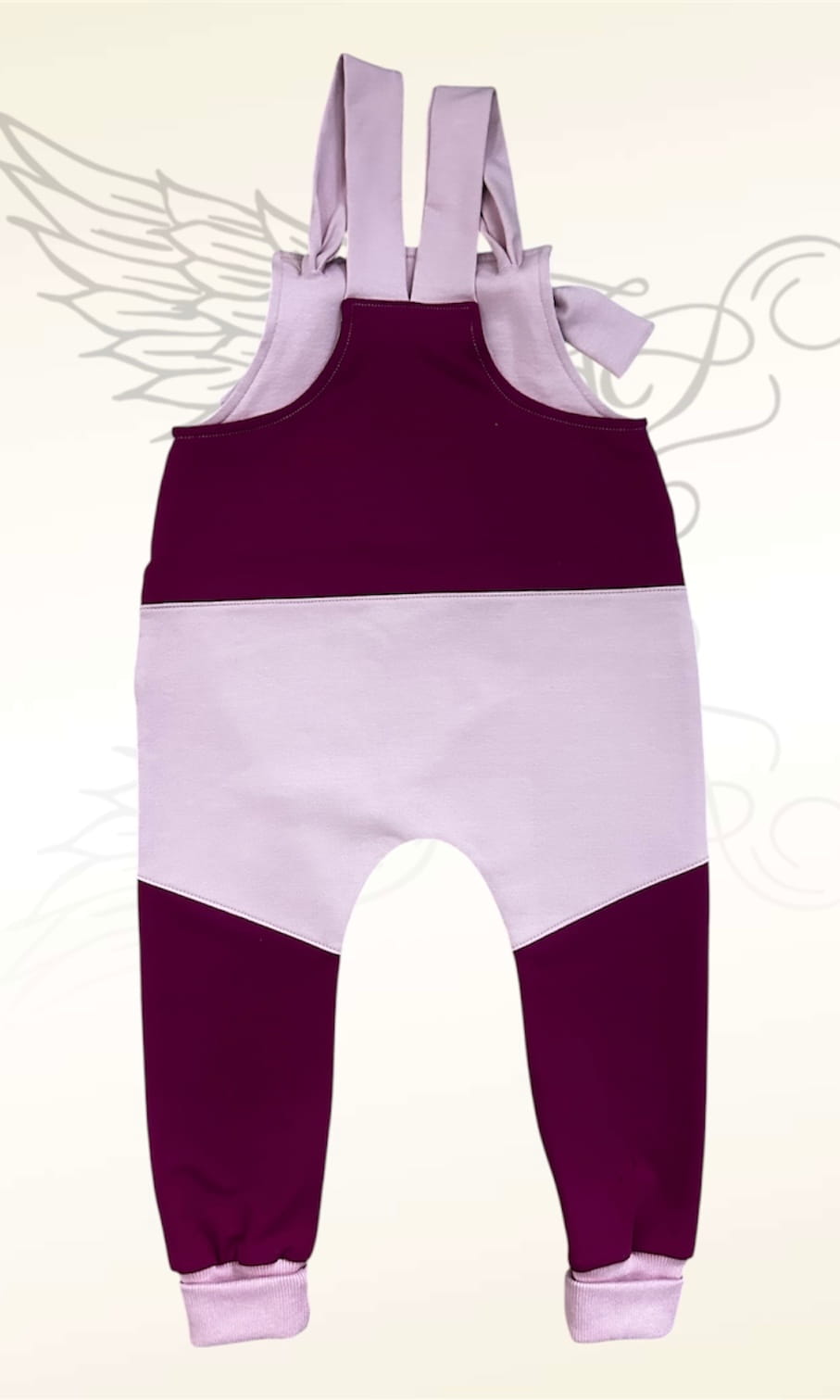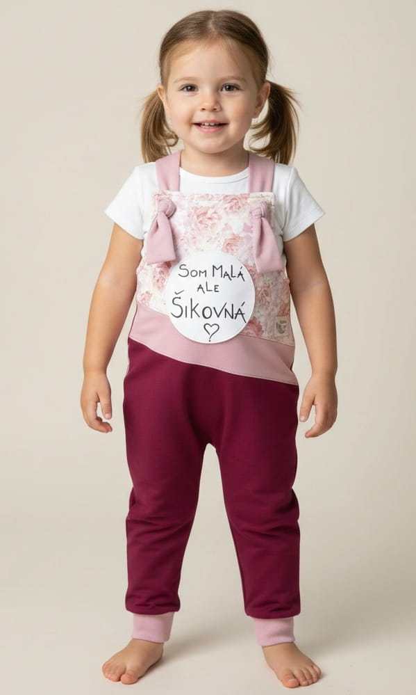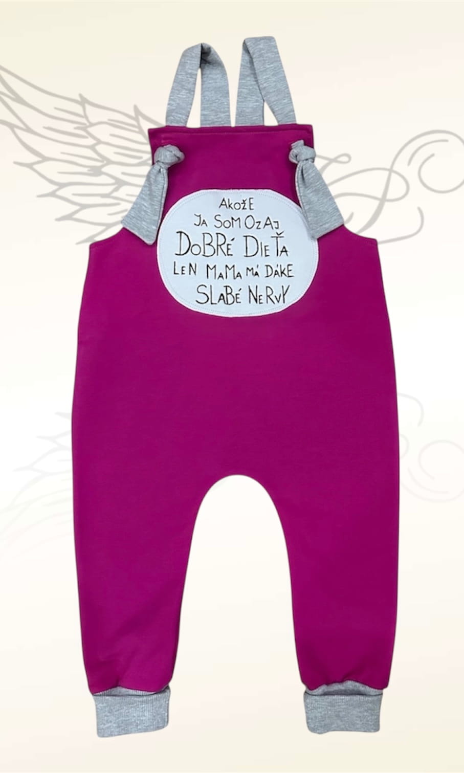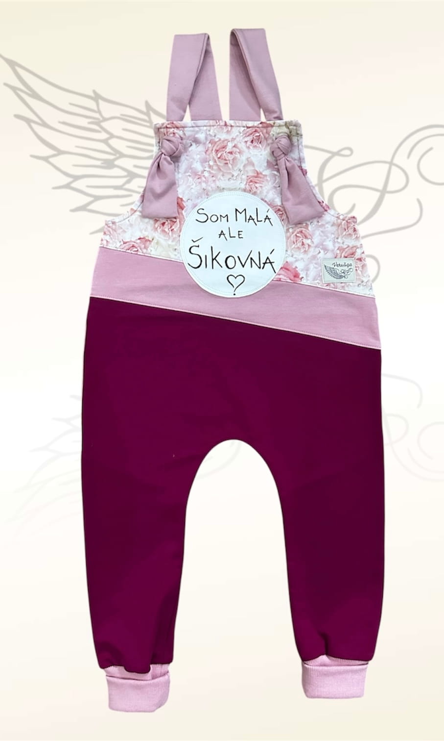 Krásne rastúce nohavice na traky s ručne maľovaným textom.