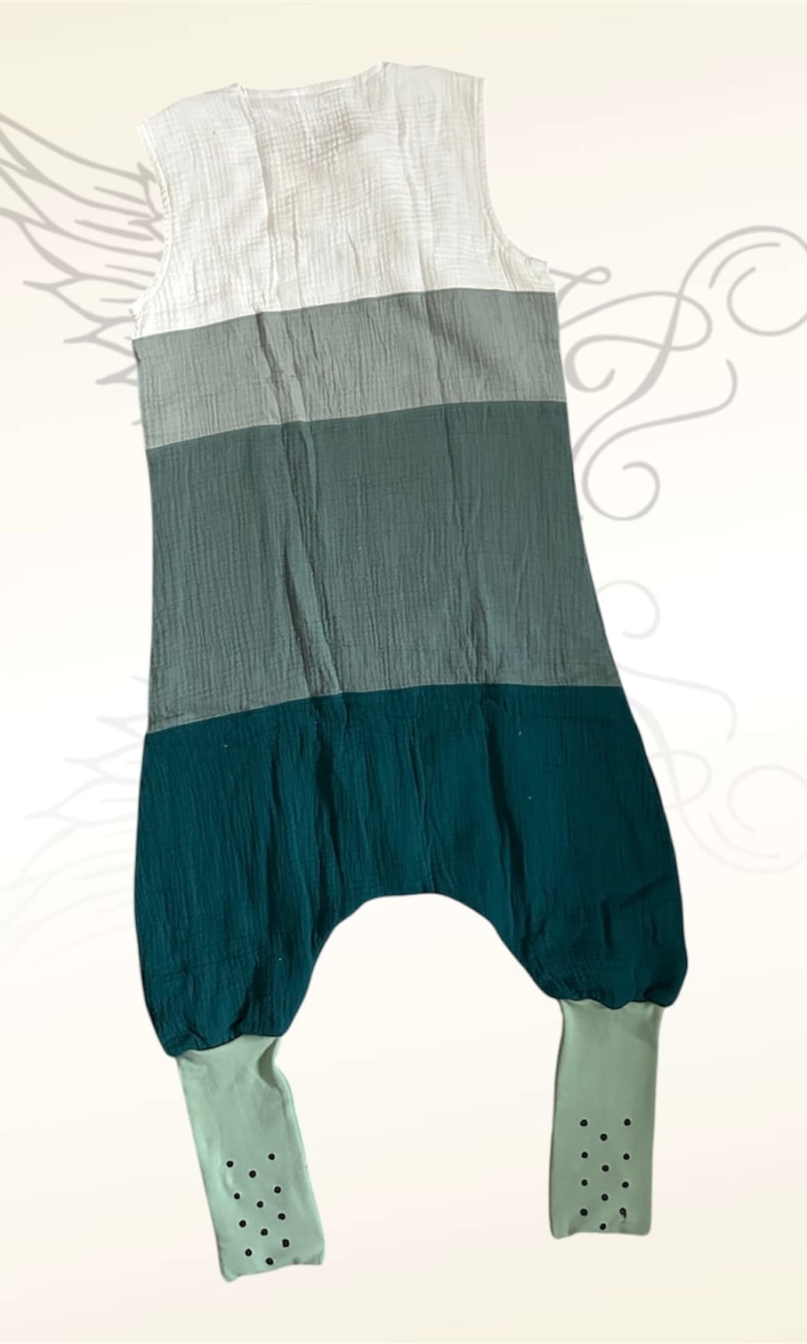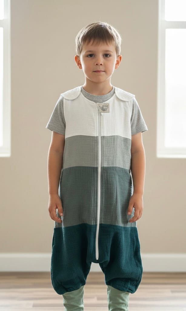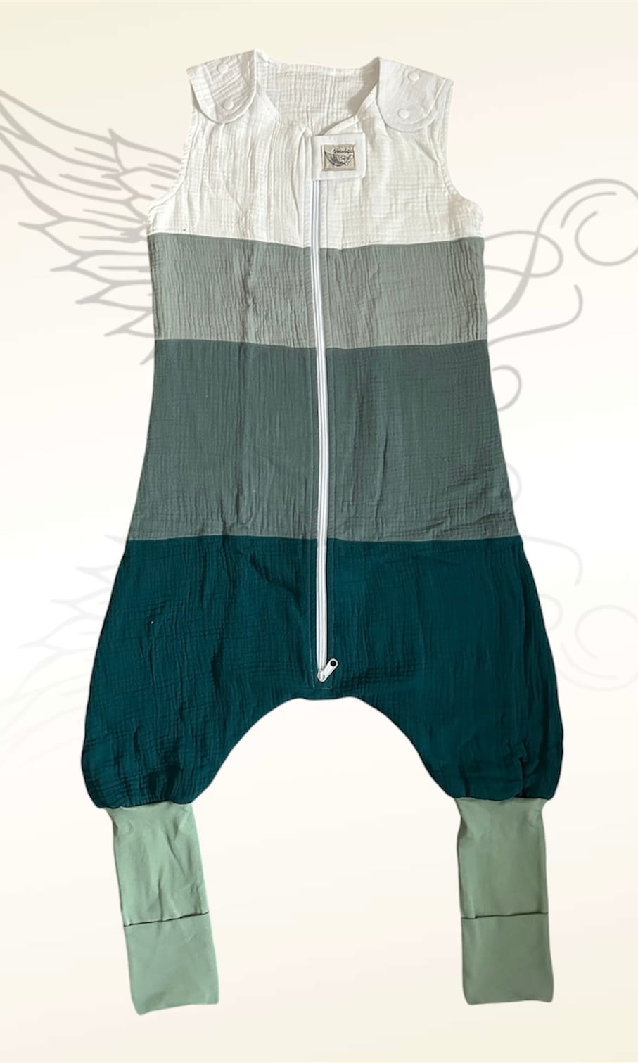 Pohodlný rastúci mušelínový spací vak s nohami pre pokojný spánok detičiek.