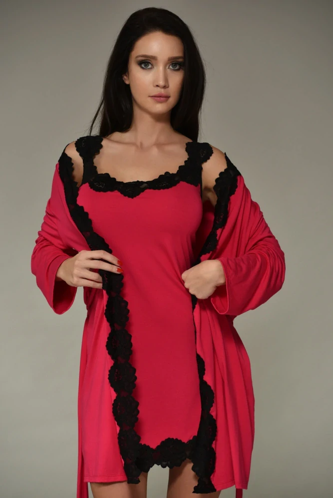 Vďaka kombinácii viskózy a elastanu si župan zachováva svoj tvar aj po opakovanom praní, pričom zostáva príjemný na nosenie. Elastická čipka dodáva tomuto praktickému kúsku nádych luxusu a ženskosti.